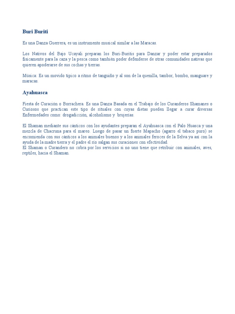 El presente trabajo es una recopilación de las danzas típicas de la Región Loreto y Ucayali, hemos