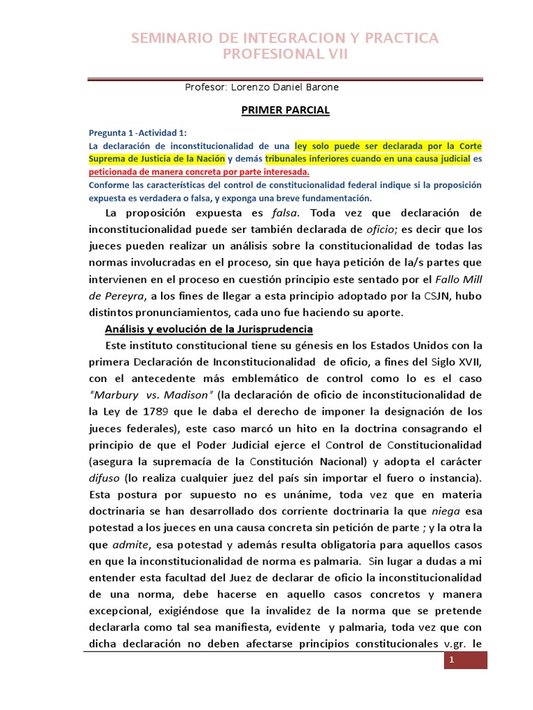 “Marbury vs. Madison” (la declaración de oficio de inconstitucionalidad de