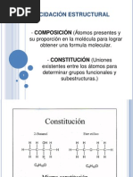 Constitución: Uniones existentes entre los átomos, lo que se traduce en la determinación de los grupos funcionales y