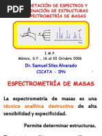 Espectrometría de masas (*) Formula molecular y subestructuras a partir de los iones observados.