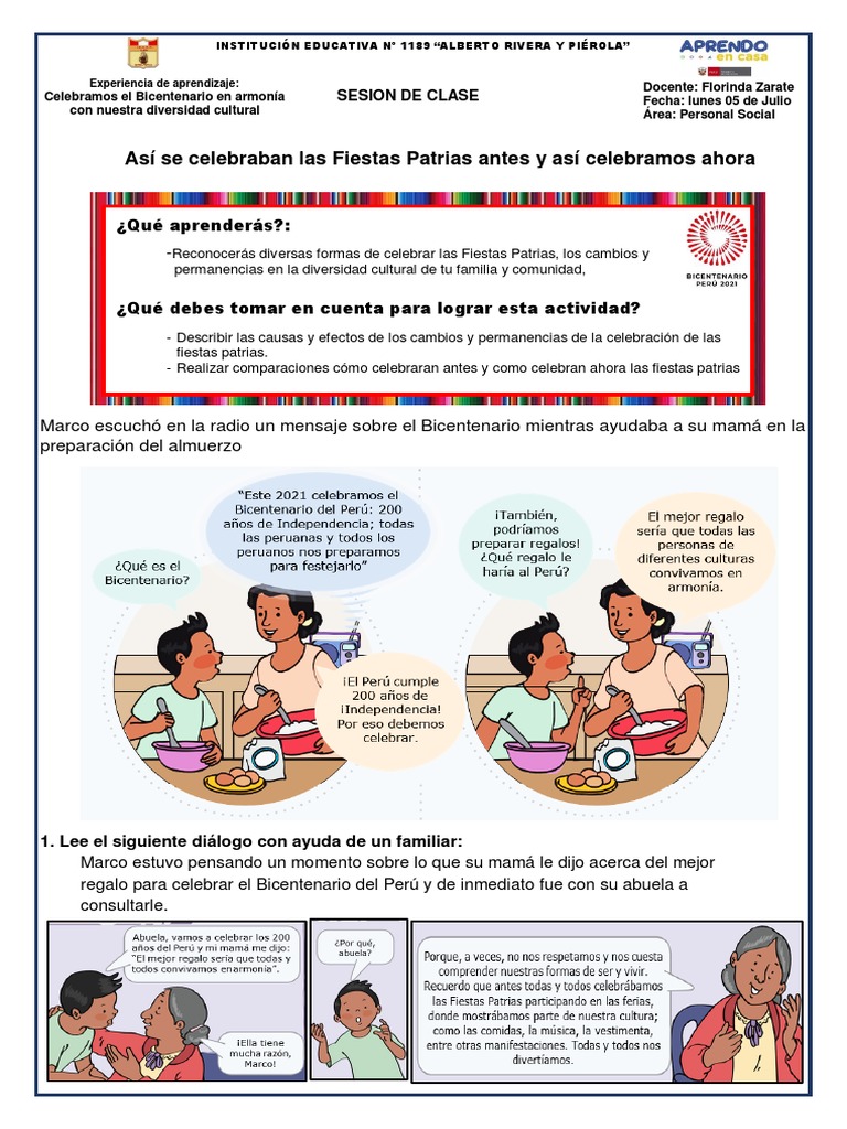 1. Lee el siguiente diálogo con ayuda de un familiar: