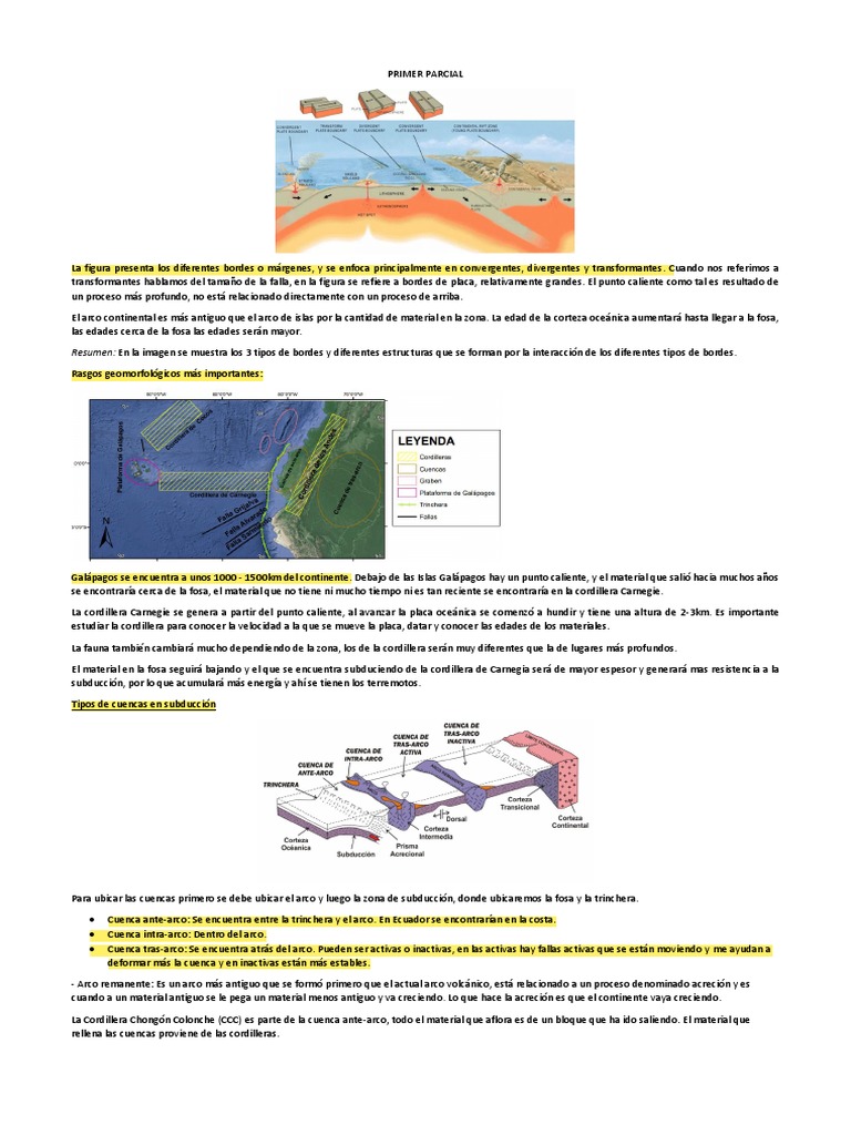 La figura presenta los diferentes bordes o márgenes, y se enfoca principalmente en convergentes, divergentes y transformantes. Cuando nos referimos a