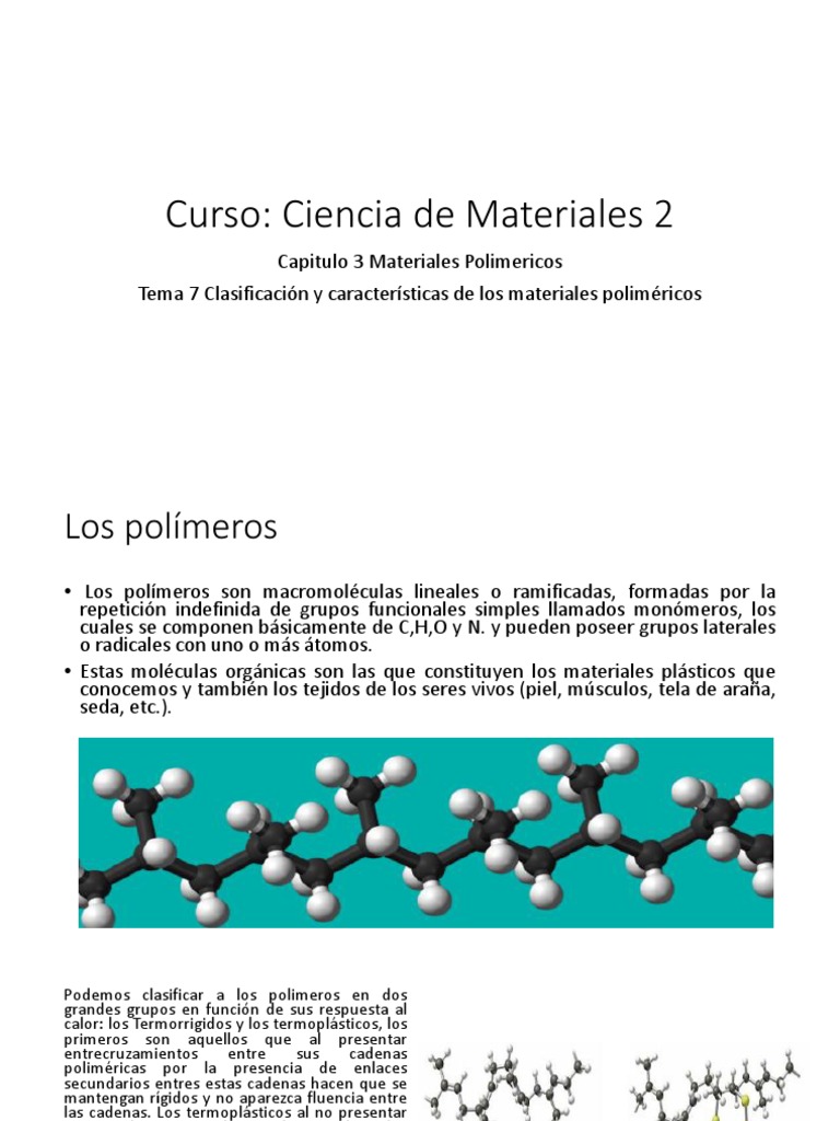 Tema 7 Clasificación y características de los materiales poliméricos
