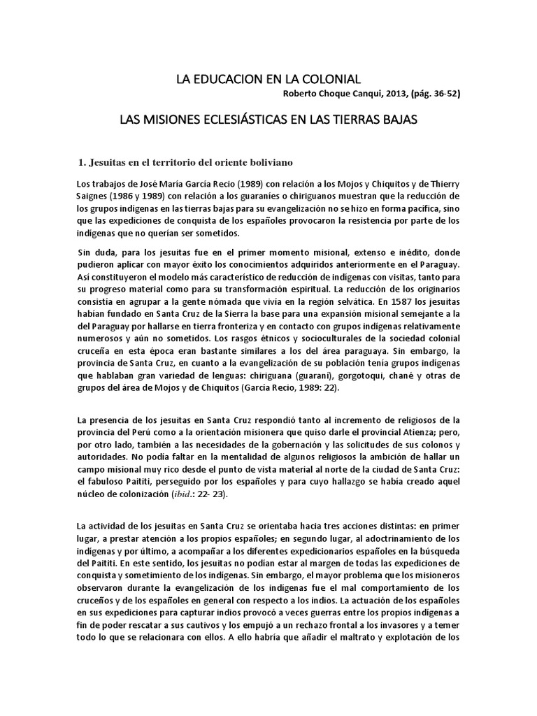 boliviano. Allí no necesitaron establecer colegios sino una educación basada en la