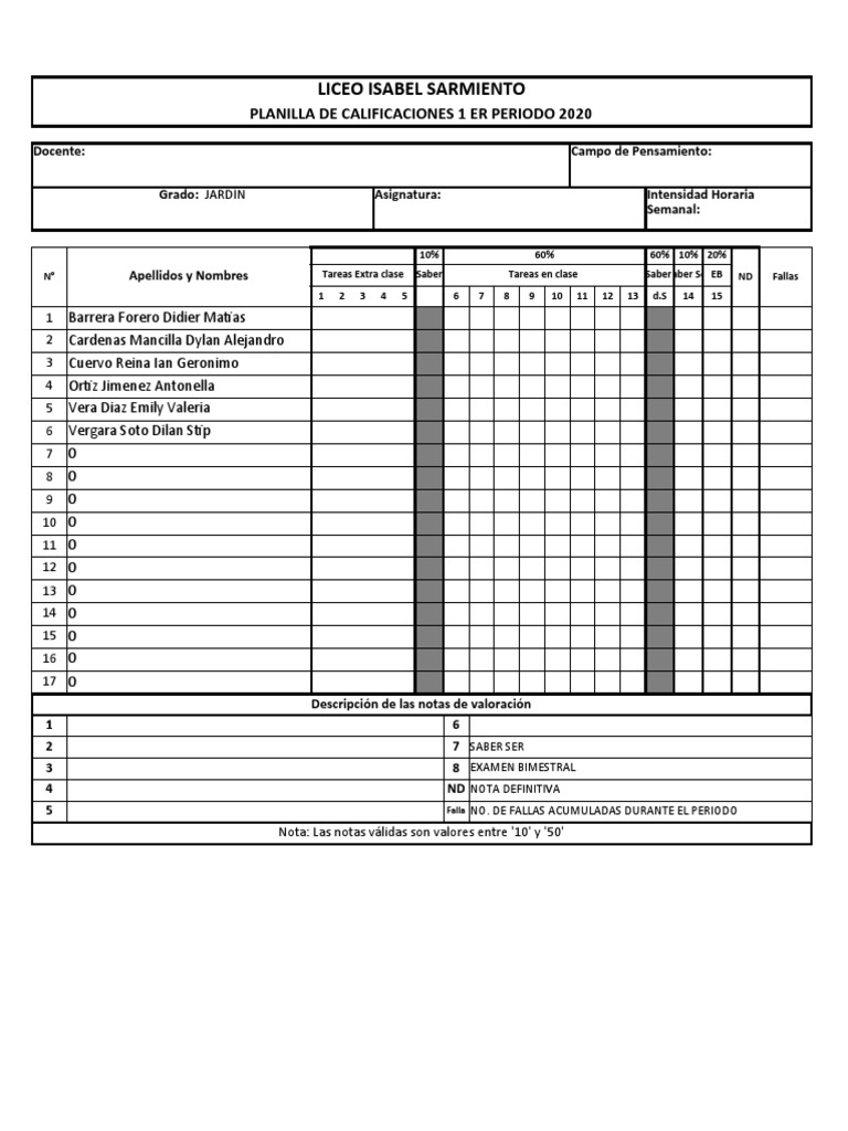 Calificaciones Primer Período 2020 Liceo Sarmiento