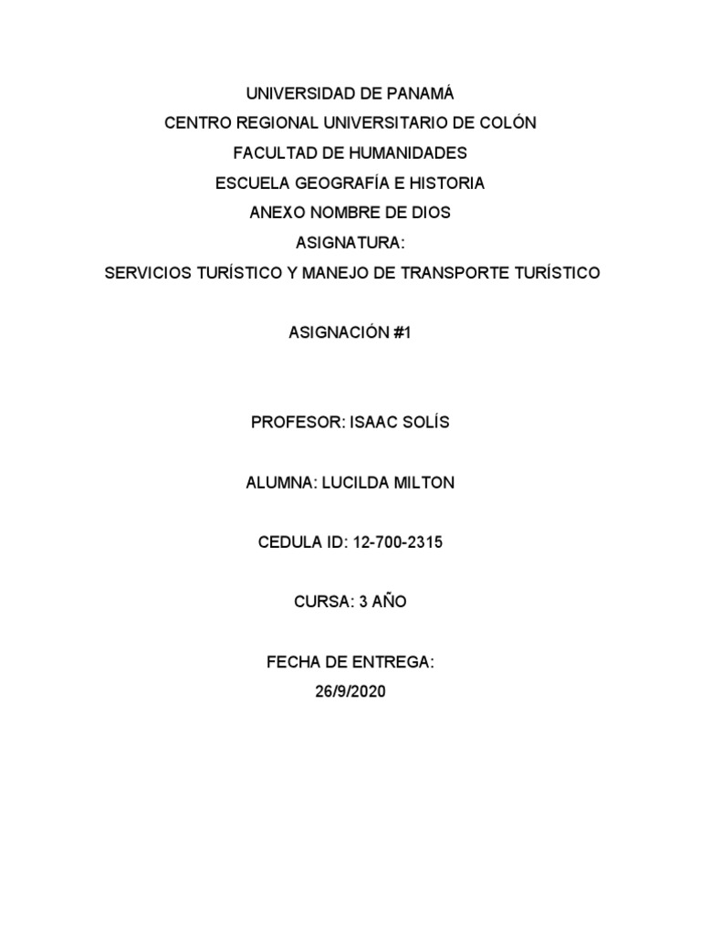 SERVICIOS TURÍSTICO Y MANEJO DE TRANSPORTE TURÍSTICO