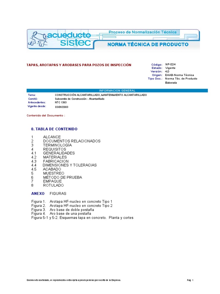 Documento controlado, su reproducción está sujeta a previo permiso por escrito de la Empresa. Pag 1
