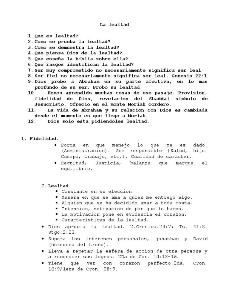 4. Que piensa Dios de la lealtad?