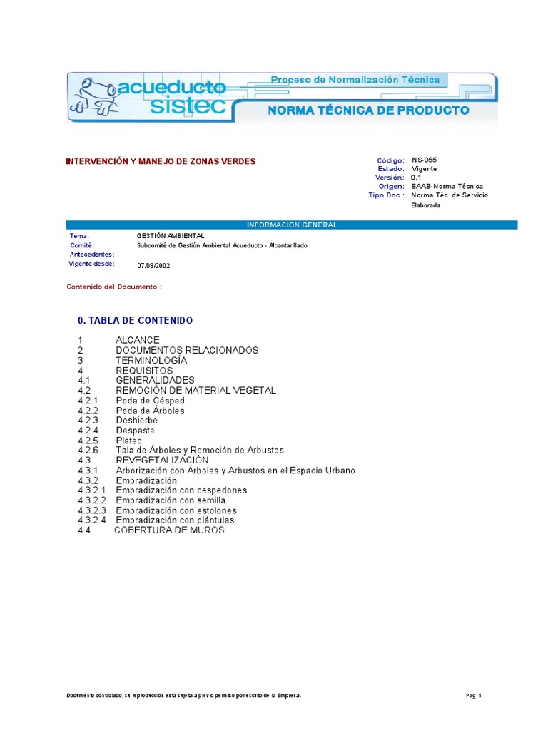 INTERVENCIÓN Y MANEJO DE ZONAS VERDES Código: NS-055