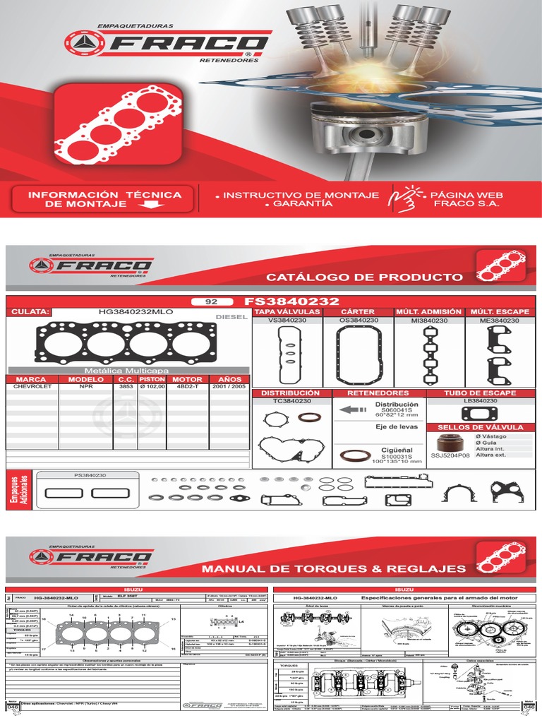 Otras aplicaciones: Chevrolet : NPR (Turbo) / Chevy W4 ASISTENCIA TÉCNICA