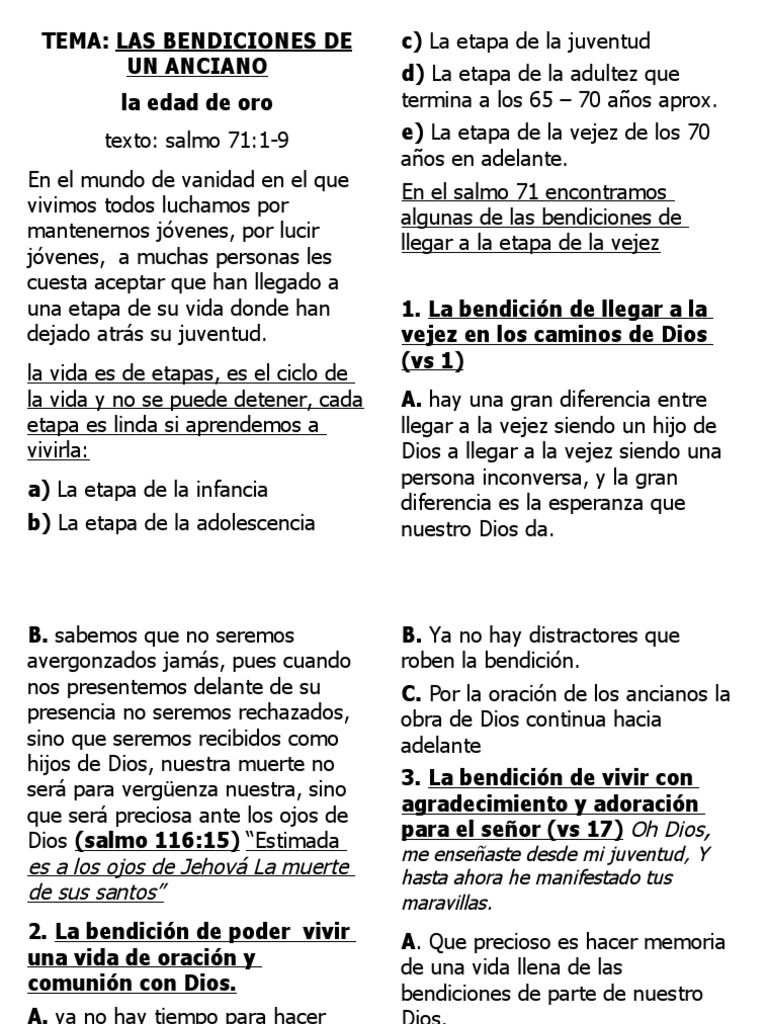 texto: salmo 71:1-9 e) La etapa de la vejez de los 70