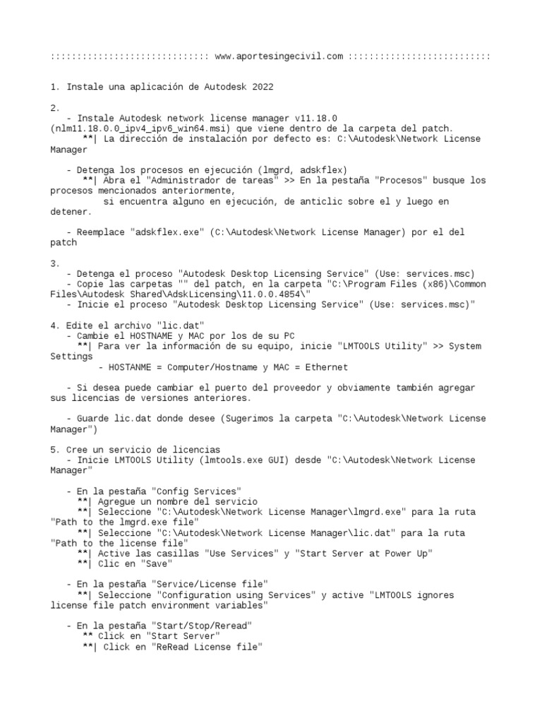 - Reemplace "adskflex.exe" (C:\Autodesk\Network License Manager) por el del