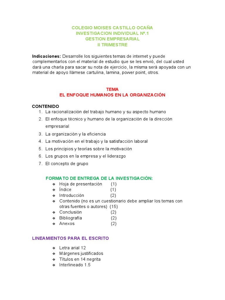 1. Debe contener todo lo que tiene el formato de investigación hay están