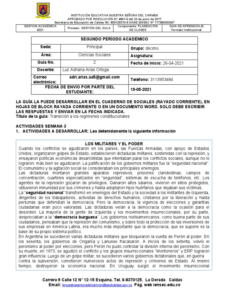 En tu cuaderno, a través de un esquema, desarrolla las causas y efectos de las dictaduras militares en