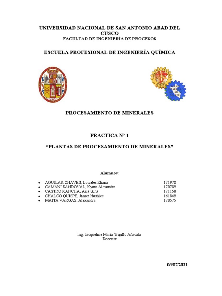 “PLANTAS DE PROCESAMIENTO DE MINERALES”