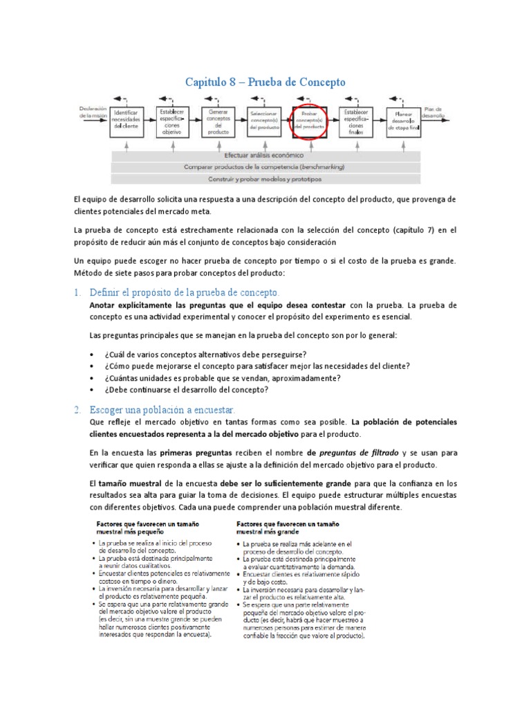 La prueba de concepto está estrechamente relacionada con la selección del concepto (capítulo 7) en el