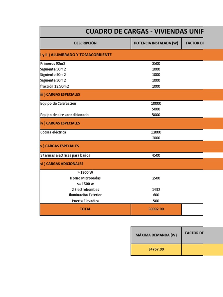 CUADRO DE CARGAS - VIVIENDAS UNIFAMILIA