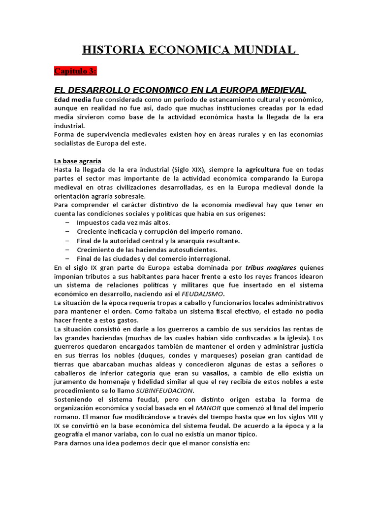EL DESARROLLO ECONOMICO EN LA EUROPA MEDIEVAL