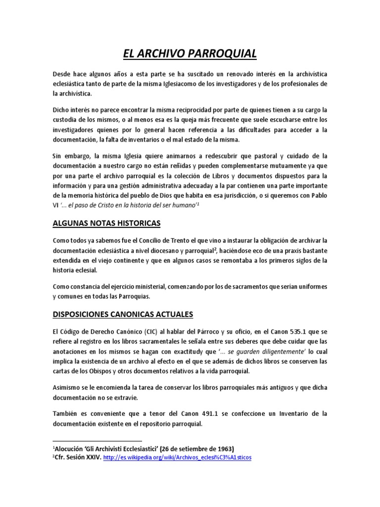 de los archivos parroquiales que van desde las más simples hasta las más complejas en virtud de la