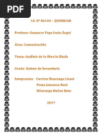 obra, forjadora de almas, se difunde el elogio de la 3. Agamenón devuelve a Criseida, peor toma a la