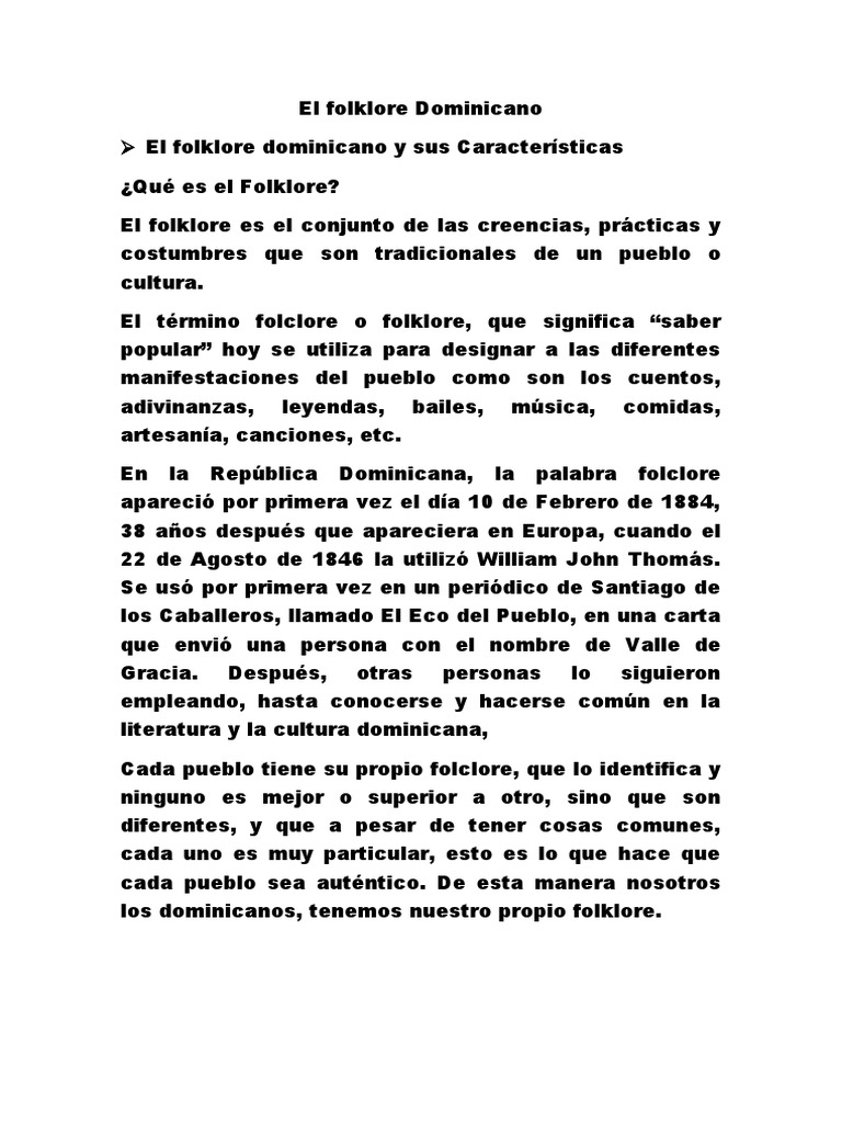 En la República Dominicana, la palabra folclore
