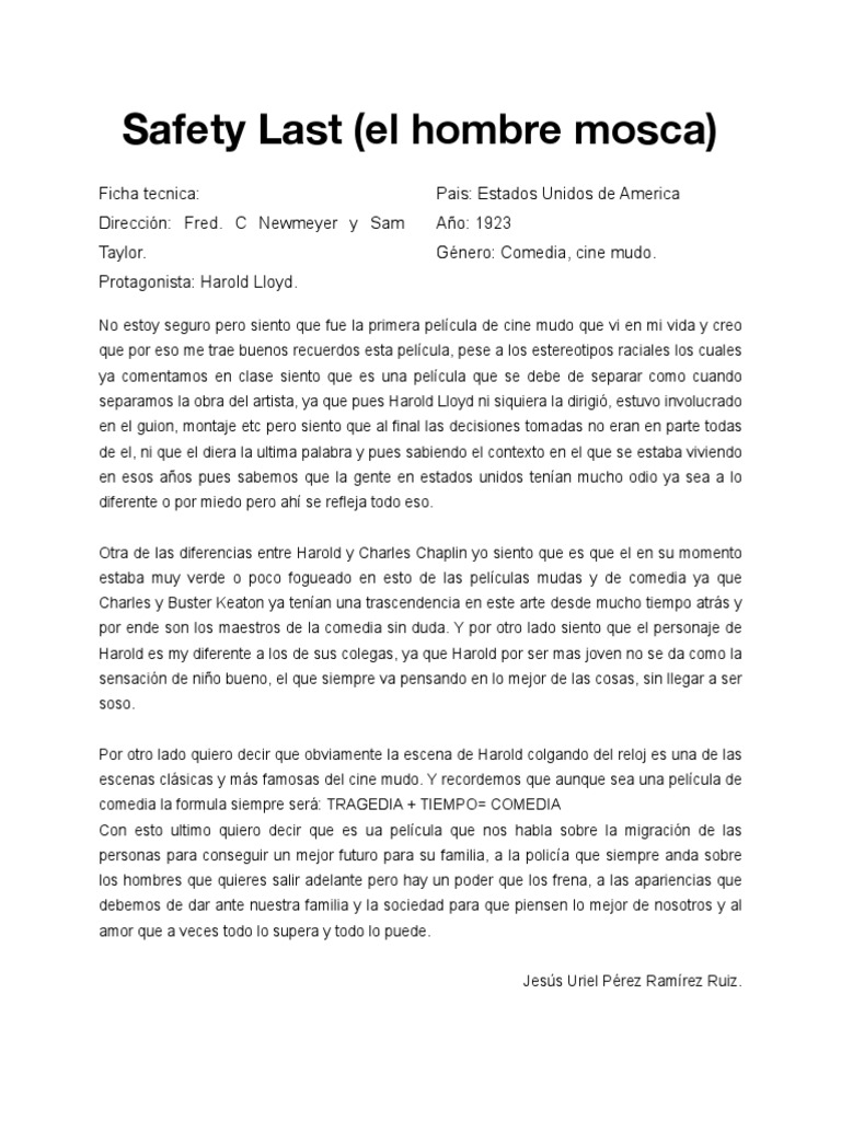 separamos la obra del artista, ya que pues Harold Lloyd ni siquiera la dirigió, estuvo involucrado