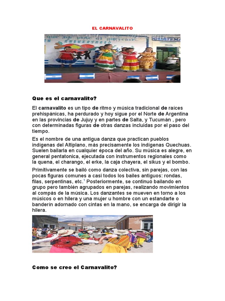 El carnavalito es un tipo de ritmo y música tradicional de raíces