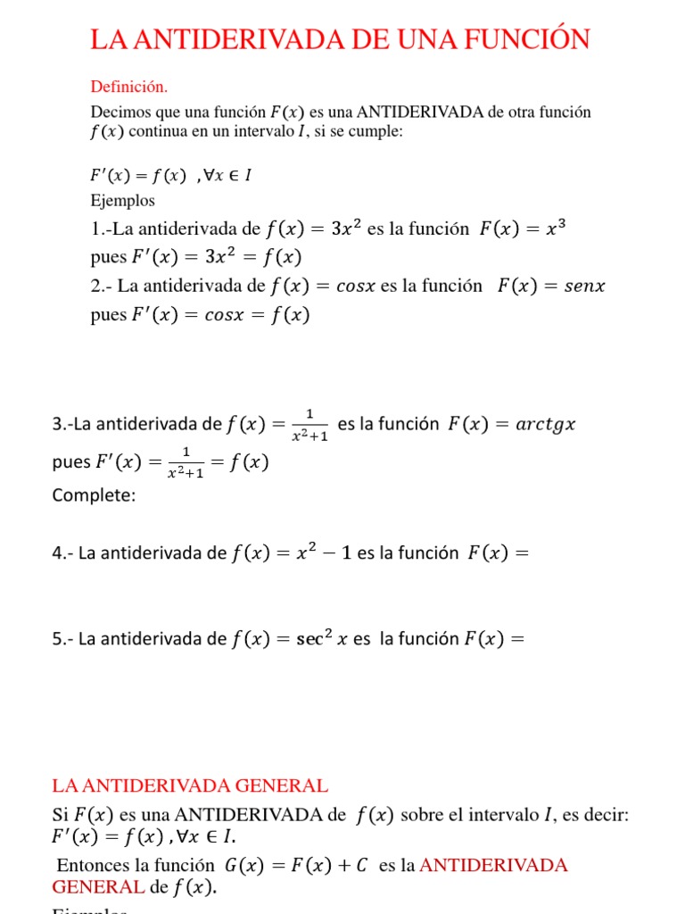 LA ANTIDERIVADA DE UNA FUNCIÓN