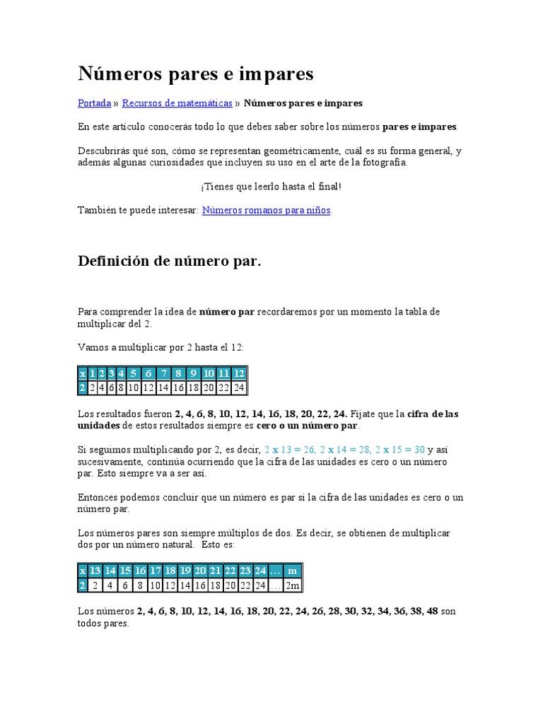Entonces podemos concluir que un número es par si la cifra de las unidades es cero o un