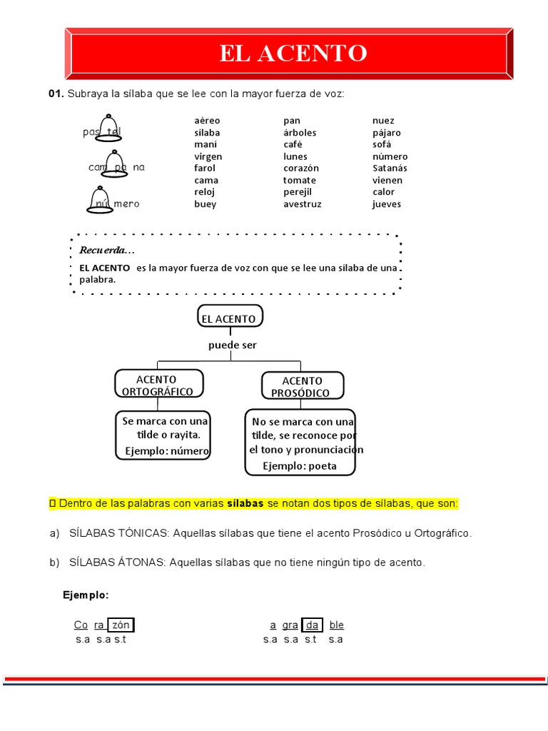 01. Subraya la sílaba que se lee con la mayor fuerza de voz: