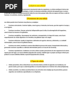 funciones vitales como: nutrición, relación y reproducción. Para la realización de éstas y otras funciones