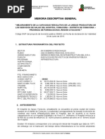 Mejoramiento y ampliación de los servicios de salud del Hospital Carlos Cornejo Rosello Vizcardo
