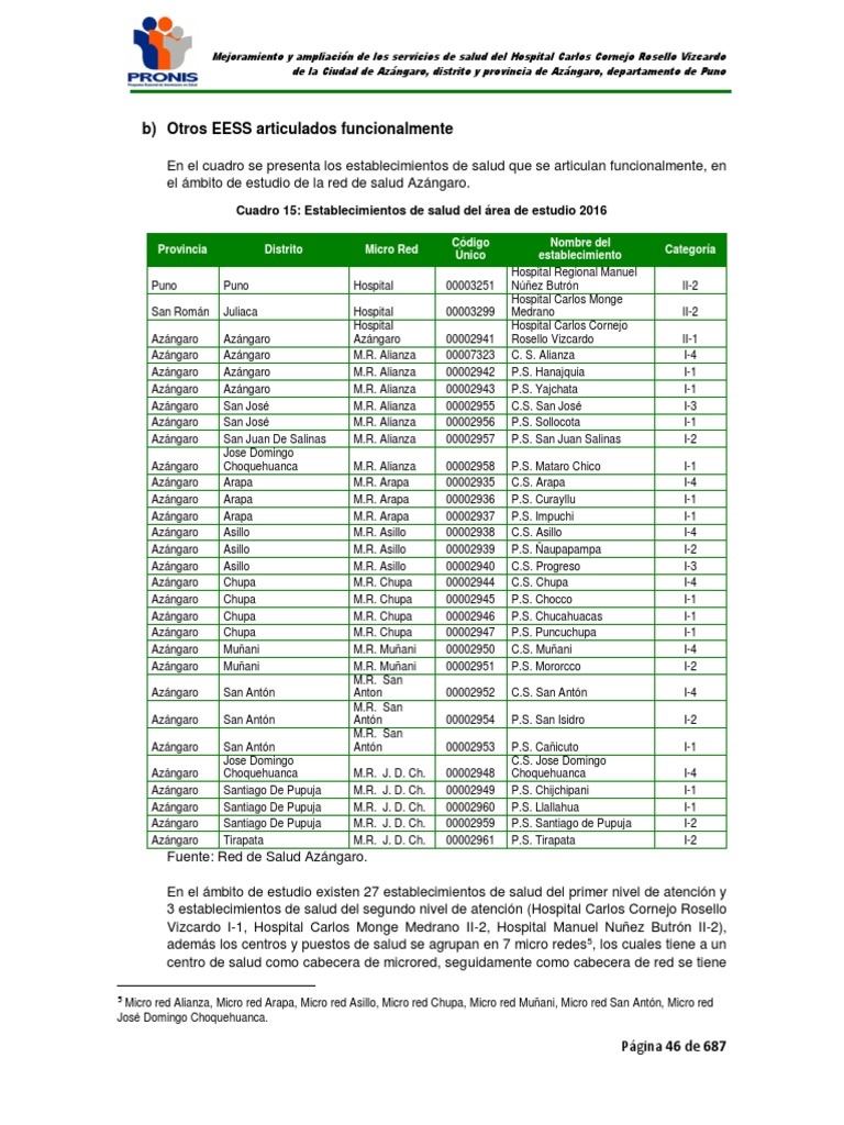 Mejoramiento y ampliación de los servicios de salud del Hospital Carlos Cornejo Rosello Vizcardo de la Ciudad de Azángaro, distrito y provincia de