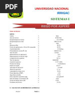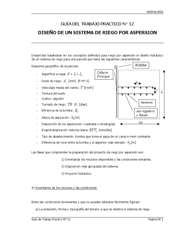 Desarrollar basándose en los conceptos definidos para riego por aspersión el diseño hidráulico