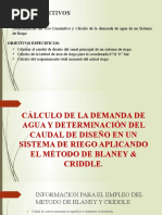 arrojando la precipitación de diseño, para aplicar la dosis de riego, para luego ser trasladados a