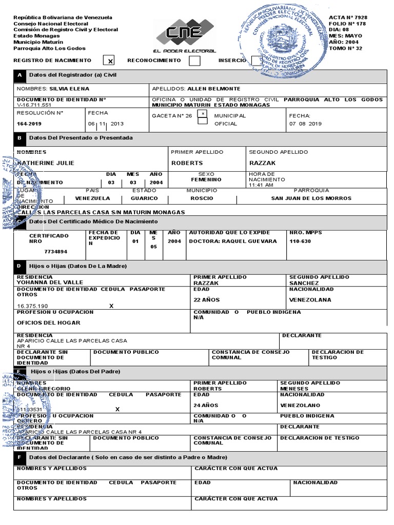 C Datos Del Certificado Médico De Nacimiento
