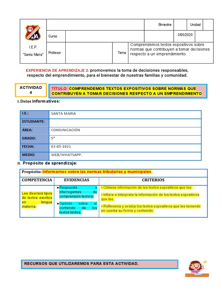 ACTIVIDAD TÍTULO: COMPRENDEMOS TEXTOS EXPOSITIVOS SOBRE NORMAS QUE