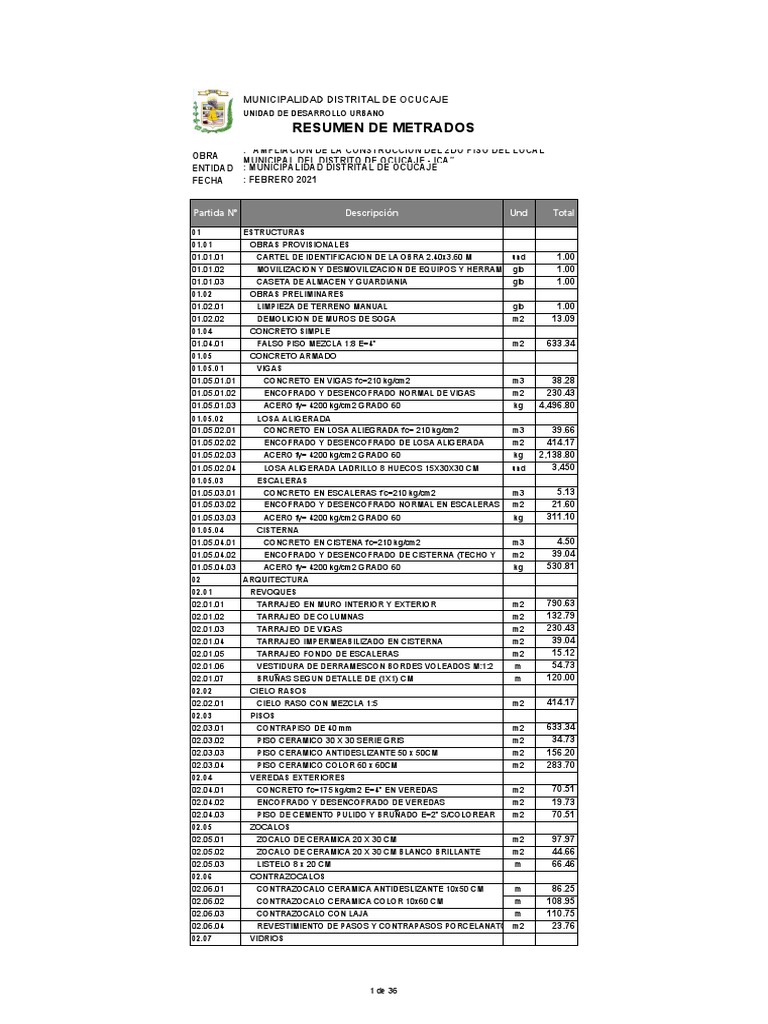 [Link] TECHO METALICO INCLUYE VIGAS PRINCIPALES Y SECUNDARIAS glb 1.00 19,100.82 19,100.82