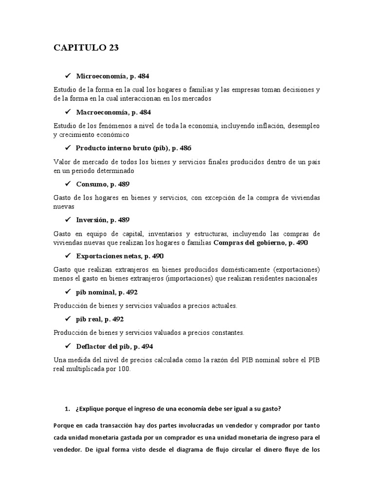 1. ¿Explique porque el ingreso de una economía debe ser igual a su gasto?