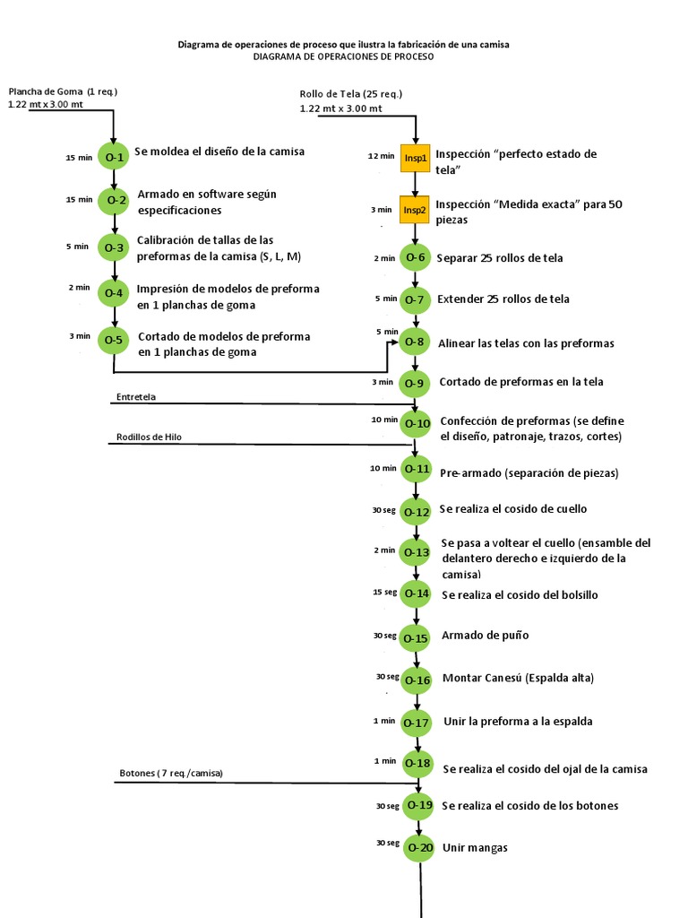 Diagrama de operaciones de proceso que ilustra la fabricación de una camisa