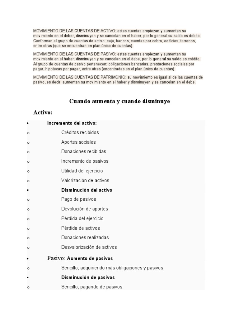 pasivo, es decir, aumentan su movimiento en el haber y disminuyen y se cancelan en el debe.