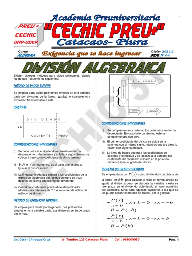 Lic. César Chiroque Cruz Jr. Tumbes 127 Catacaos Piura Cel. : 969009030 Pág. 1