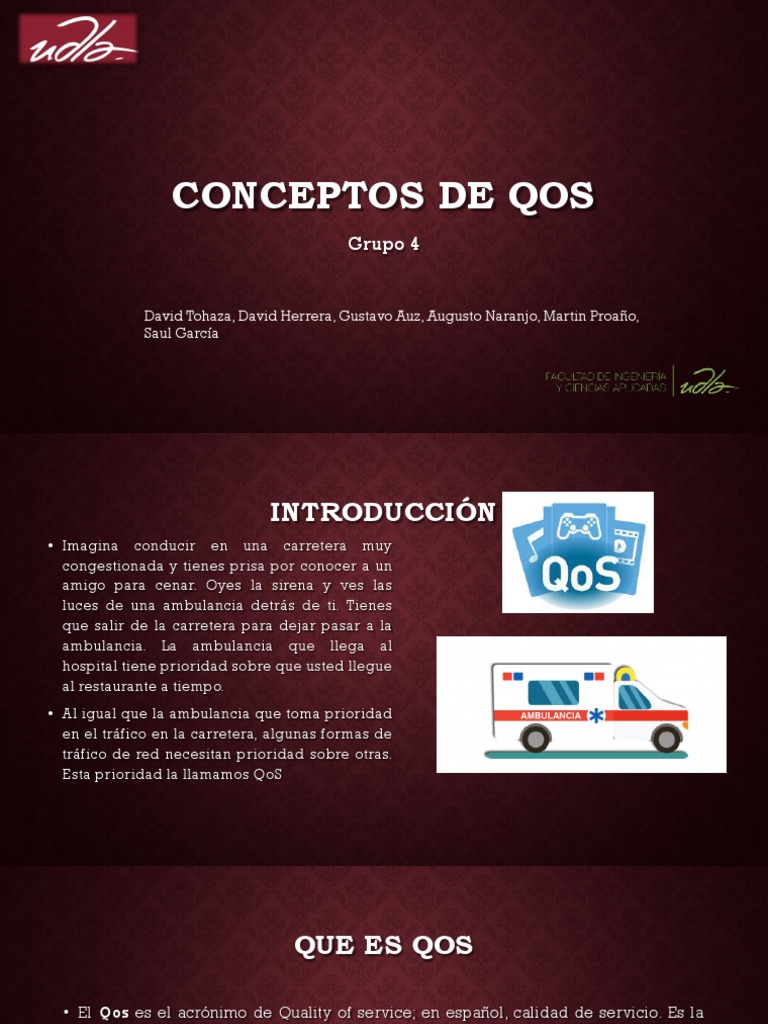 • El Qos es el acrónimo de Quality of service; en español, calidad de servicio. Es la