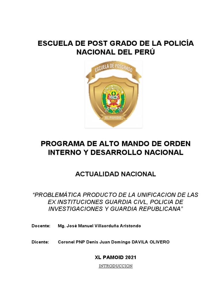 ESCUELA DE POST GRADO DE LA POLICÍA