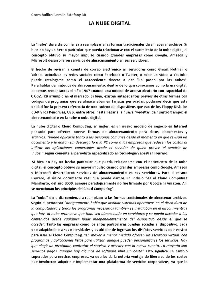 nueva era de almacenamiento de información. La “nube” permite ingresar a los datos desde