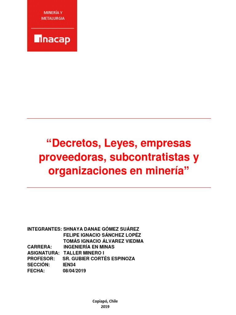 Proveedores y Legislación Minera Chile