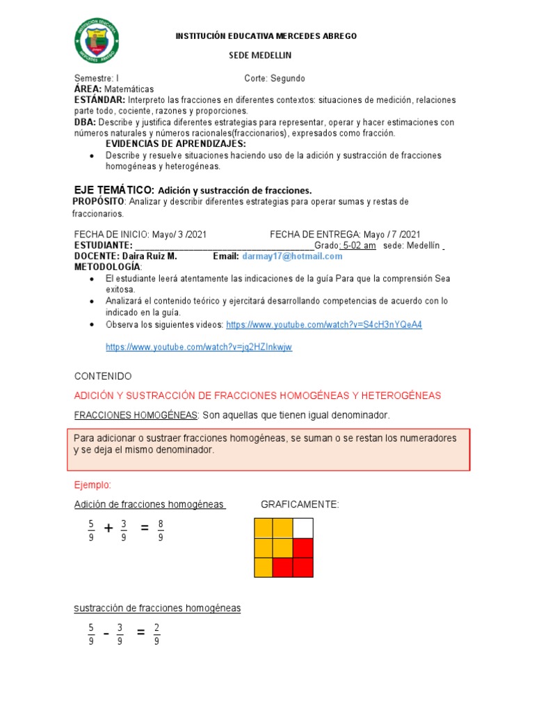 ADICIÓN Y SUSTRACCIÓN DE FRACCIONES HOMOGÉNEAS Y HETEROGÉNEAS