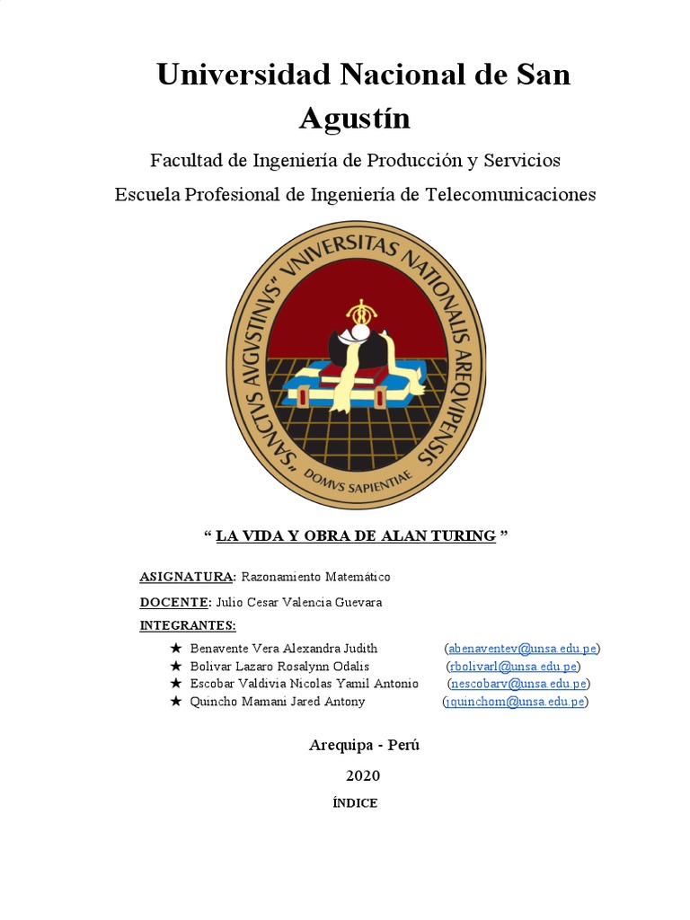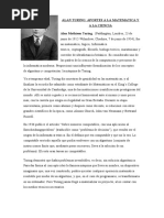 El siguiente trabajo tiene el objetivo de conocer la vida de Alan Turing, su biografía, sus