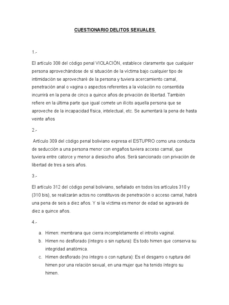 Artículo 309 del código penal boliviano expresa el ESTUPRO como una conducta