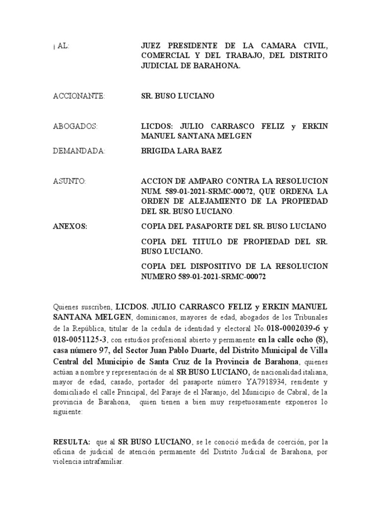 RESULTA: que no tomando en cuenta que el SR. LUCIANO BUSO, no tiene otro